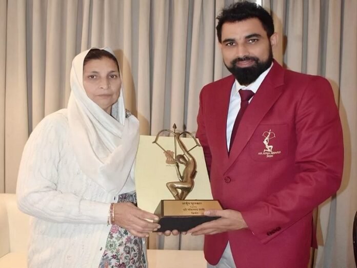 भारतीय टीम के तेज गेंदबाज मोहम्मद शमी अर्जुन अवार्ड मिलने के बाद बेहद खुश हैं। शमी ने अर्जुन अवार्ड के साथ अपनी मां और परिवार की तस्वीरें साझा की है। शमी ने बड़ी मुश्किलों और संघर्ष से जीवन में एक मुकाम हासिल किया है। पारिवारिक तनाव की वजह से शमी को मानसिक तनाव भी झेलना पड़ा,लेकिन शमी ने बुरे वक्त में भी अपना जोश और जज्बा बरकरार रखा। यही वजह है कि आज मोहम्मद शमी ने सफलता के शीर्ष को छू लिया है।