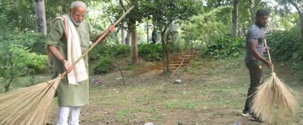 प्रधानमंत्री नरेंद्र मोदी ने स्वच्छता ही सेवा अभियान के तहत श्रमदान किया। उन्होंने हरियाणा के सोनीपत में रेसलर और सोशल मीडिया इनफ्लुएंसर अंकित बैयनपुरिया के साथ मिलकर सफाई अभियान में अपनी सहभागिता निभाई।इस दौरान उन्होंने रेसलर अंकित निल से बातचीत की।उन्होंने इसका का वीडियो भी शेयर किया है।