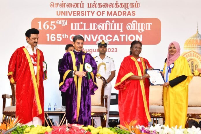 राष्ट्रपति द्रौपदी मुर्मू ने मद्रास यूनिवर्सिटी के 165 दीक्षांत समारोह को सम्बोधित करते हुए शिक्षा ,शिक्षक और छात्रों को लेकर कई बातें कही। उन्होंने मद्रास यूनिवर्सिटी की उत्कृष्टता की तो चर्चा की है यहाँ से निकले उन विद्वानों ,छात्रों की भी चर्चा की जिन्होंने देश और दुनिया बड़ी भूमिका निभाई है।