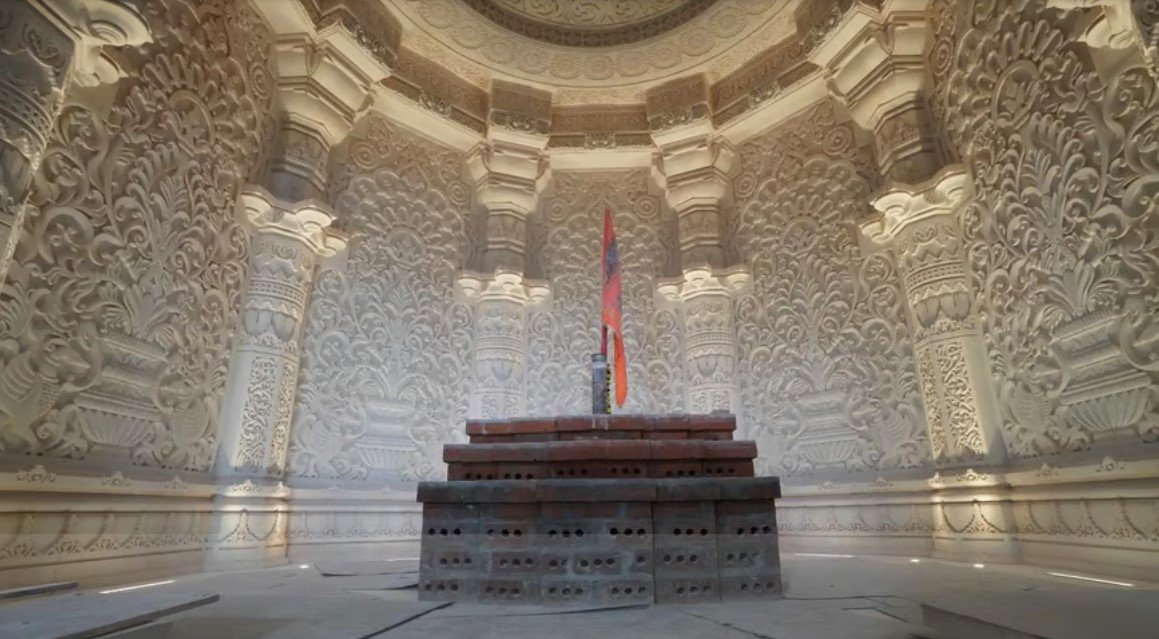 अयोध्या में 22 जनवरी 2024 को रामलाल के प्राण प्रतिष्ठा कार्यक्रम को लेकर तैयारियां तेजी से चल रही है। इस कड़ी में धर्मपथ पर सूर्य स्तंभ स्थापित किया जा रहा है। अयोध्या के जिलाधिकारी नीतीश कुमार ने बताया कि लतामंगेशकर चौक के पास धर्म पथ पर आरंभ और समापन बिंदु के बीच नियमित अंतर पर सूर्य स्तंभ स्थापित किया जा रहा है।वहीं रामलला का गर्भ गृह पूरी तरह से तैयार हो चुका है। 400 फीट लंबे और 300 फीट चौड़े गर्भ गृह की अद्भुत नक्कासी बेहद आकर्षित करने वाली है।मंदिर की चौखट पर पहुंचते ही भक्तों को सबसे पहले गज नजर आएंगे। 32 सीढ़ियां चढ़कर भक्त गर्भ गृह तक पहुंचेंगे। करीब 20 फीट की दूरी से भक्तों को रामलला के दर्शन प्राप्त होंगे। राम मंदिर के दरवाजों का निर्माण वैष्णव परंपरा के तहत किए गए हैं।भूतल में कुल 14 दरवाजे बनाए गए हैं।गर्भगृह की फर्श पर संगमरमर लगाने का काम लगभग पूरा हो चुका है। इस बीच काशी विद्वत परिषद ने रामलला के सिंहासन के रूप में नवरत्नों का प्रस्ताव राम मंदिर ट्रस्ट को दिया है।राम मंदिर के गर्भ गृहों में नवरत्नों से निर्मित सुमेरु पर्वत पर रामलाल को विराजमान कराया जाएगा।सुमेरु पर्वत का निर्माण हीरा, पन्ना और माणिक्य जैसी बहुमूल्य रत्नों से होगा। काशी विद्वत परिषद की ओर से काशी के समस्त देवताओं को भी आमंत्रण देने की तैयारी की जा रही है।जिन देवताओं को आमंत्रण दिया जा रहा है उसमें 9 गौरी, नवदुर्गा, 56 विनायक, अष्ट भैरव,द्वारा आदित्य ,संकट मोचन सहित योगानियां शामिल हैं।