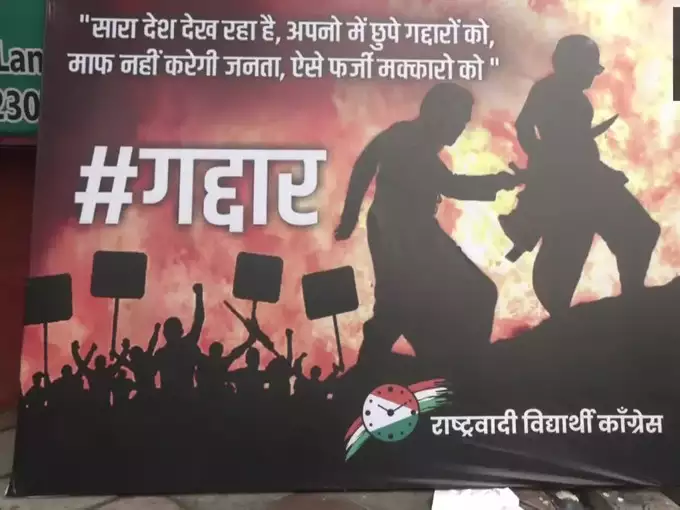 महाराष्ट्र में एनसीपी बनाम एनसीपी संकट के बीच, राष्ट्रवादी विद्यार्थी कांग्रेस ने फिल्म ‘बाहुबली – द बिगिनिंग’ के एक दृश्य पर डिजाइन किया गया एक पोस्टर लगाया है, जिसमें उसके किरदार ‘कटप्पा’ को ‘अमरेंद्र बाहुबली’ की पीठ में छुरा घोंपते हुए दिखाया गया है।