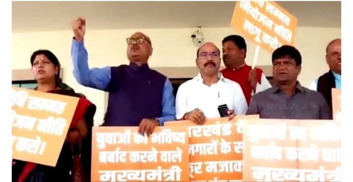 इन तख्तियों के जरिए बीजेपी के विधायकों ने सरकार से विधि सम्मत नियोजन नीति लागू करने की मांग की। विपक्षी दल के विधायकों ने आरोप लगाया कि झारखंड की वर्तमान सरकार युवाओं के भविष्य के साथ खिलवाड़ कर रही है । प्रदर्शन कर रहे बीजेपी नेताओं ने नारेबाजी करते हुए कहा युवाओं का भविष्य बर्बाद करने वाले मुख्यमंत्री इस्तीफा दो।