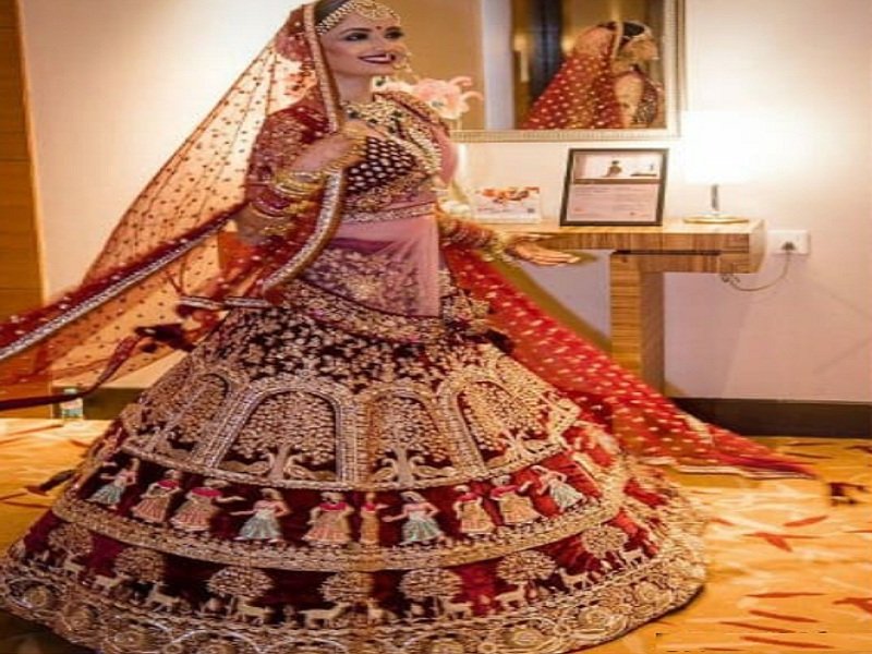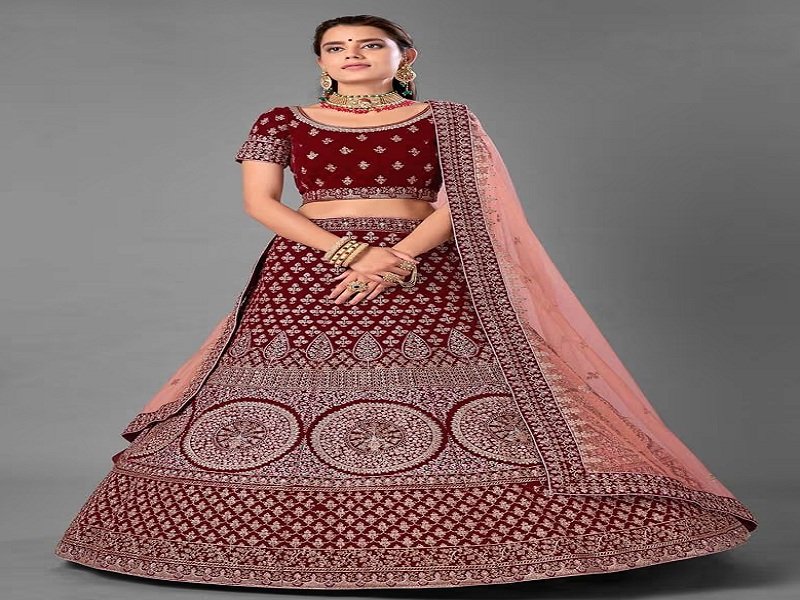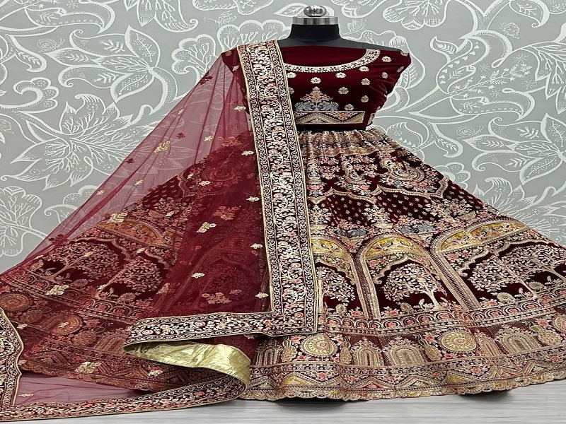 Bridal Lehenga For Reception | Velvet Maroon Bridal Lehenga