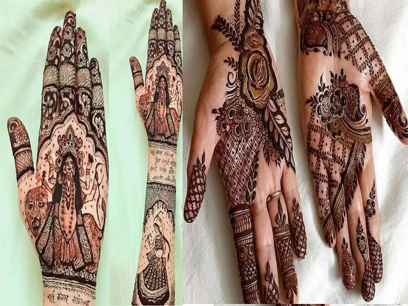नवरात्रि के 9 दिन मां दुर्गा के नौ रूपों की पूजा की जाती है। इसके साथ ही माता का विशेष 16 श्रृंगार किया जाता है। इस साल चैत्र नवरात्रि की शुरुआत 09 अप्रैल से हो रही है। नवरात्रि की तैयारियां सिर्फ पूजा-पाठ तक ही सीमित नहीं रहती बल्कि इस दौरान लोग कई तरह के कार्यक्रमों का आयोजन भी करते हैं। महिलाएं इस दौरान तरह-तरह के स्टाइलिश कपड़े पहनती हैं और सजती-संवरती हैं। सजने-संवरने में मेहंदी लगाना भी एक जरूरी हिस्सा है। ऐसे में हम आपके लिए कुछ भक्तिमय मेहंदी डिजाइन लेकर आए हैं जो दिखने में बहुत खूबसूरत और लगाने में बहुत ही आसान हैं।