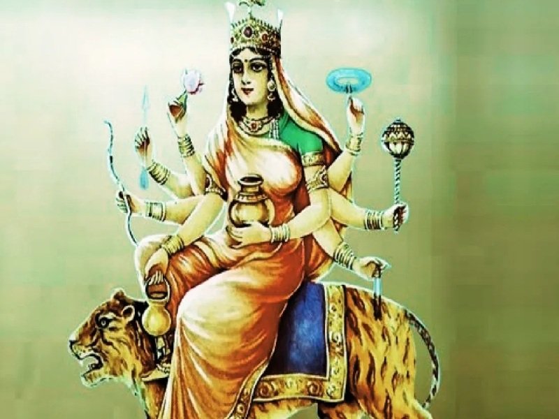 शास्त्रों में मां कूष्मांडा को अष्टभुजा देवी के नाम से भी संबोधित किया गया है। इनके हाथों में धनुष, बाण, चक्र, गदा, अमृत कलश, कमल और कमंडल सुशोभित है.आठवें हाथ में वे सभी सिद्धियों और निधियों को देने वाली जप माला धारण करती हैं। शास्त्रों में बताया गया है कि जब सब जगह अंधकार ही अंधकार था, तब माता ने अपने इस स्वरूप से ब्रह्मांड का सृजन किया था। माता कूष्मांडा शेर की सवारी करती हैं।
