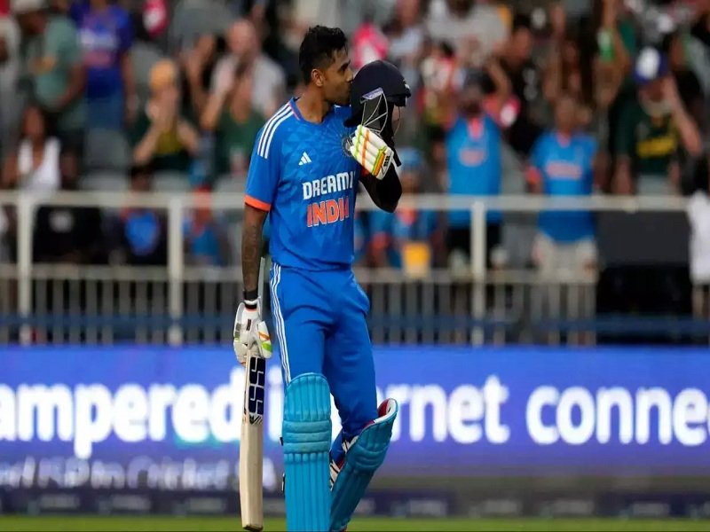 2.3 ओवर में 29 रन पर दो विकेट गिरने के बाद सूर्यकुमार यादव और यशस्वी जायसवाल ने 69 गेंद पर 112 रन की ताबड़तोड़ साझेदारी करते हुए भारतीय पारी को संभाला। 14वें ओवर में जब स्कोर 141 हुआ, तब यशस्वी आउट हुए। उन्होंने 41 गेंद पर 60 रन बनाए। जायसवाल के बाद सूर्या ने रिंकू सिंह के साथ मिलकर पारी आगे बढ़ाई। दोनों के बीच 27 गेंद पर 47 रन की पार्टनरशिप हुई। रिंकू सिंह 10 गेंद पर 14 रन बनाकर आउट हुए। इसके ठीक बाद सूर्यकुमार यादव ने 55 गेंद पर अपना शतक पूरा किया। उन्होंने अपनी पारी में 8 छक्के जमाए।