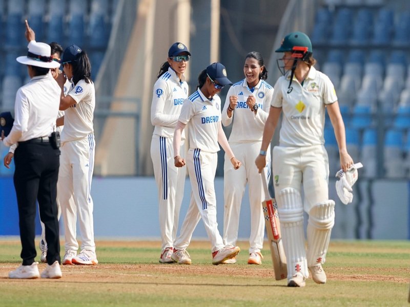 भारत की महिला क्रिकेट टीम ने ऑस्ट्रेलिया के खिलाफ खेले गये एकमात्र टेस्ट मैच में आठ विकेट से हराकर ऐतिहासिक जीत हासिल की है। मुंबई के वानखेड़े स्टेडियम में खेले गये मुकाबले के चौथे दिन भारतीय टीम ने ऑस्ट्रेलिया की दूसरी पारी को 261 रन पर समेट दिया। इस तरह भारतीय टीम को ऑस्ट्रेलिया के खिलाफ पहली टेस्ट सीरीज जीत के लिए दूसरी पारी में सिर्फ 75 रनों का आसान सा लक्ष्य मिला। भारत ने इस लक्ष्य को 2 विकेट के नुकसान पर हासिल कर लिया। इस भारत ने कंगारुओं के खिलाफ 8 विकेट से एतिहासिक जीत दर्ज की है। इस मुकाले में स्नेह राणा ने सात विकेट हासिल किया, उन्हें इस शानदार प्रदर्श के लिए प्लेयर ऑफ द मैच से नवाजा गया।