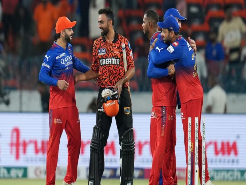 इससे पहले टॉस जीतकर पहले बल्लेबाजी करते हुए आरसीबी की शुरुआत धमाकेदार रही। विराट कोहली और डुप्लेसी की ओपनिंग जोड़ी ने 3.5 ओवर में 48 रन की ताबड़तोड़ साझेदारी की। इस स्कोर पर टी नटराजन ने डुप्लेसी को आउट किया। पावरप्ले की आखिरी गेंद पर विल जैक्स भी पवेलियन लौट गए। चौथे नंबर पर उतरे रजत पाटीदार ने आतिशी बल्लेबाजी करते हुए 19 गेंद में पचासा जड़ा। उन्होंने मयंक मार्कंडेय को लगातार 4 छक्के मारे, हालांकि दूसरे छोर से विराट कोहली संघर्ष करते दिखे। एक समय 11 गेंद में 23 रन ठोक चुके कोहली 43 गेंद में 51 रन की धीमी पारी खेलकर आउट हुए। वह पावरप्ले के बाद कोई बाउंड्री नहीं लगा पाए। कैमरन ग्रीन ने 20 गेंद में नाबाद 37 रन जोड़ आरसीबी को 200 के पार पहुंचाया। हैदराबाद के लिए जयदेव उनादकट ने 30 रन देकर 3 विकेट लिए।
